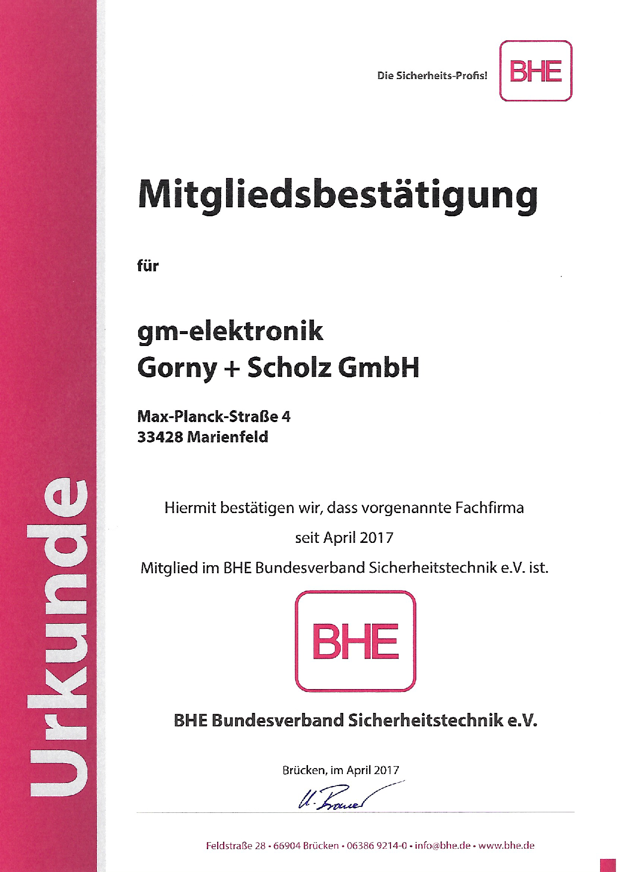 Wir sind Mitglied im BHE Bundesverband Sicherheitstechnik e.V.